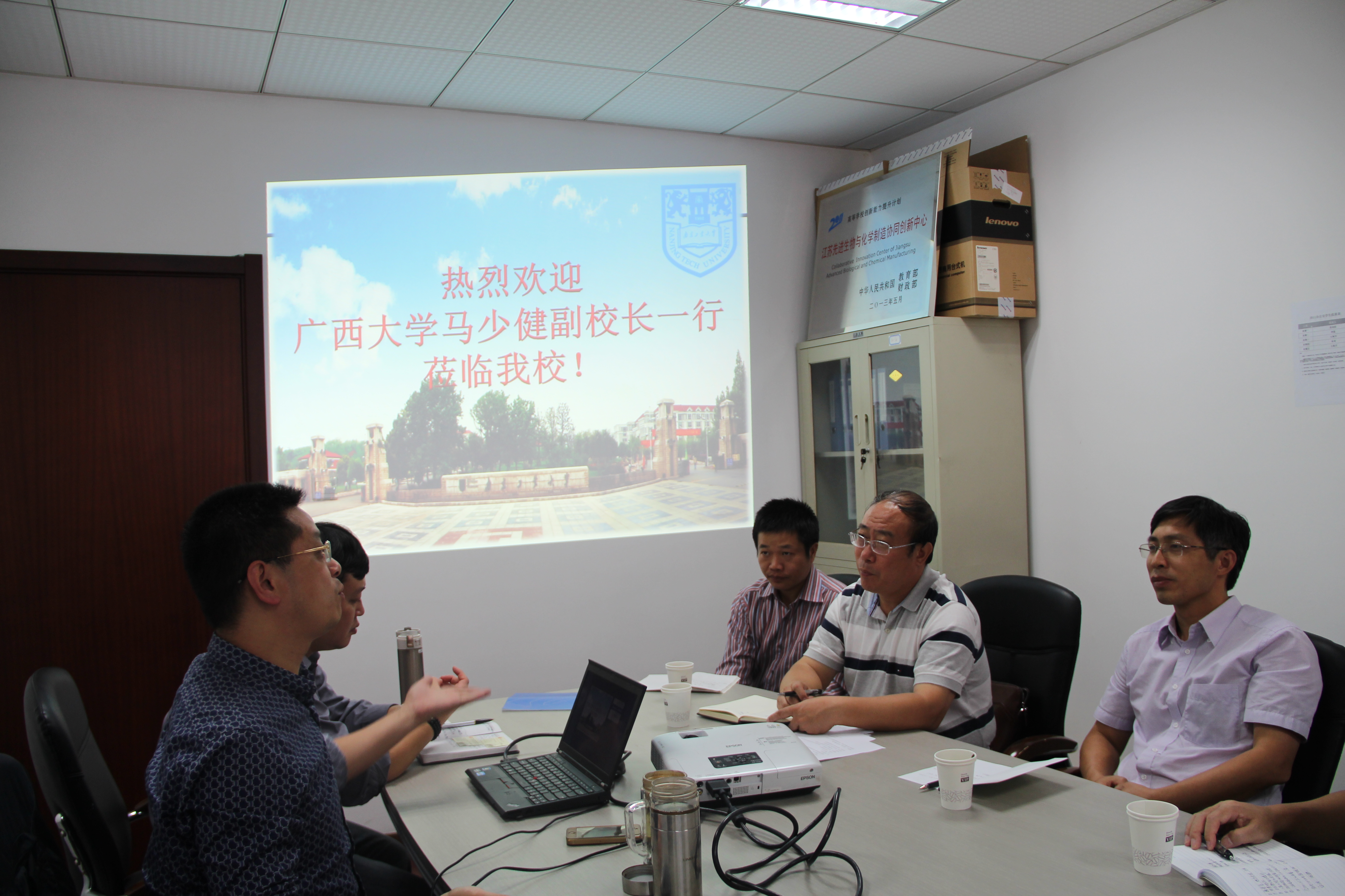 10月24日下午,广西大学副校长马少健教授一行来我校专题调研协同创新。协同创新部协同创新办公室(政策研究室)秦卫明副主任在江浦校区行政楼422热情接待了调研团一行。