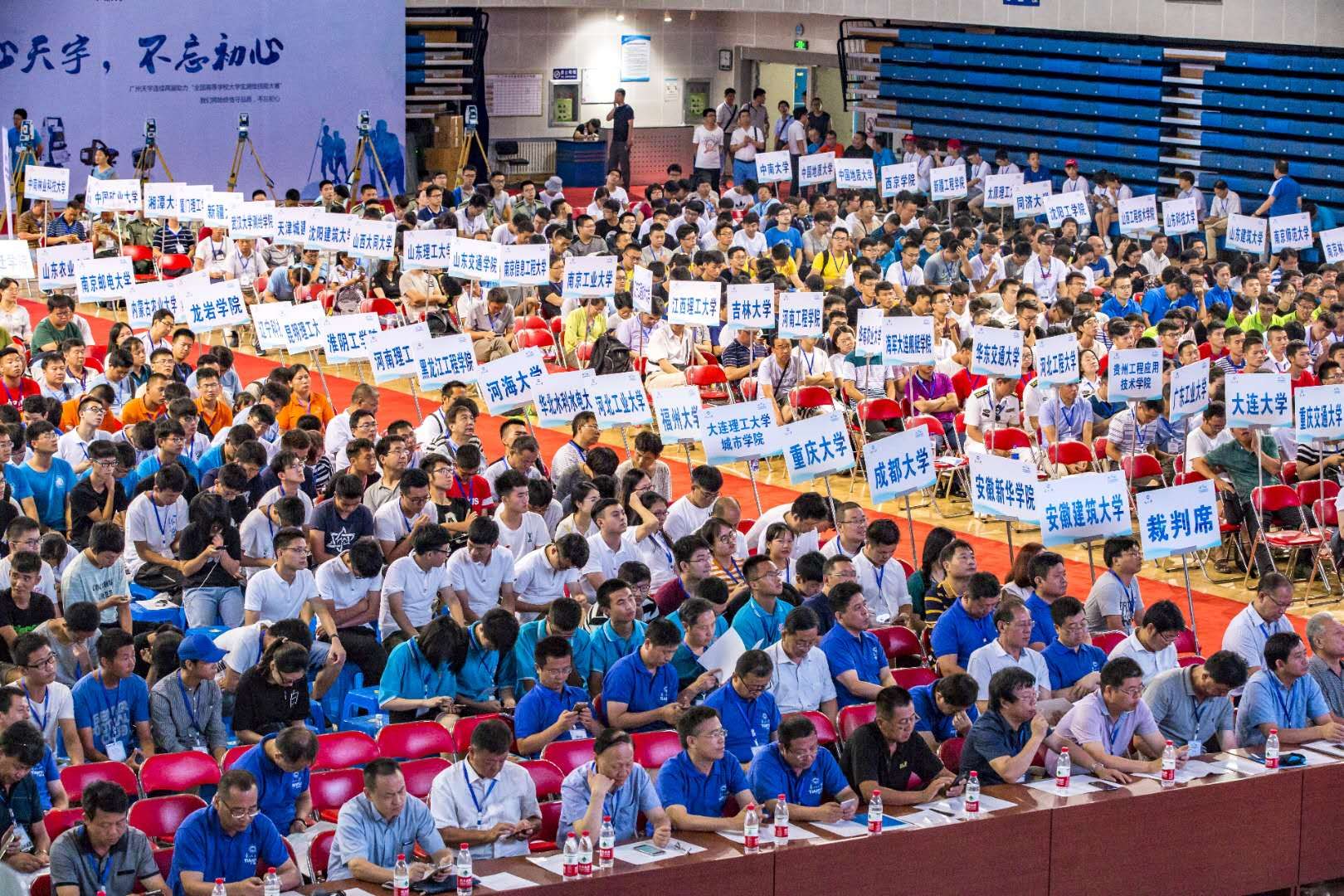 本次全国高等学校大学生测绘大赛共吸引来自全国112所高校的113支代表队报名参加,参赛学生达到700余人,规模空前。中国测绘学会测绘教育委员会名誉主任委员、中国工程院院士、武汉大学宁津生教授,教育部高等学校测绘类专业教学指导委员会主任委员、中国测绘地理信息学会测绘教育委员会主任委员、中国工程院院士、武汉大学副校长李建成教授,东北大学校长赵继教授,国家测绘地理信息局职业技能鉴定指导中心易树柏主任,本次大赛总裁判长、中国测绘地理信息学会测绘教育委员会副主任委员、解放军信息工程大学翟翊教授,广州天宇光电仪器有限公司董事长马然等领导、专家出席大赛开幕式。