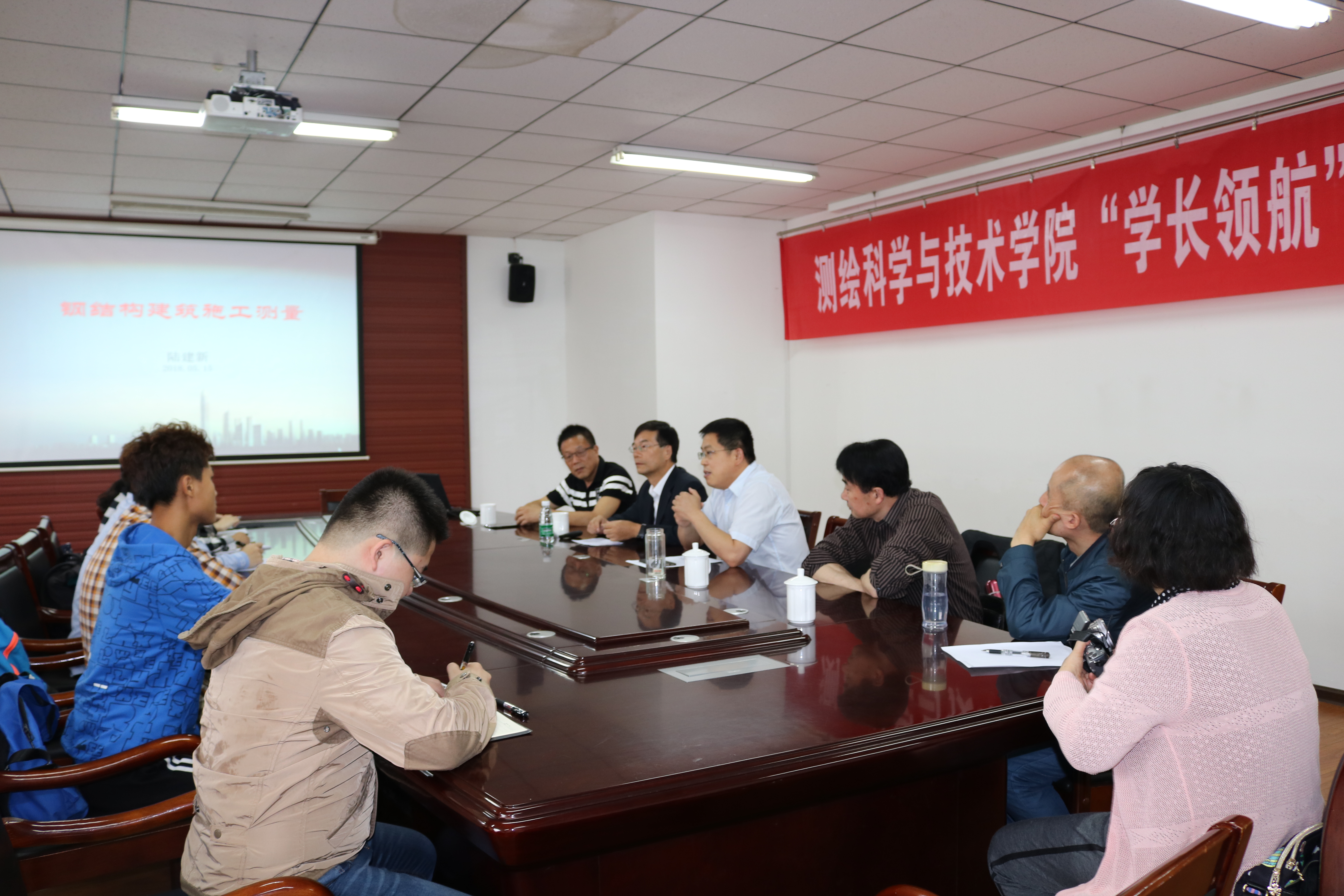 报告中,陆建新校友以PPT的方式,结合自己自82年起开始承担超高层建筑项目的工程实践,向大家介绍了他参与或主持建造的中国超高层高楼,其中包括深圳国贸中心大厦、帝王商业大厦和上海环球金融中心大厦等标志性项目。结合这些实践,陆校友既谈体会心得,又不时提出对于青年学生和学院人才培养的意见与建议。他说做建筑测量工作是既危险又辛苦的,不仅要在危险的环境中来回走动,还要时刻保证测量数据的准确性;测量工作就是一个考验胆识和耐性的工作。测量工作为保证测量结果的精度和实现设计要求要不断创新。陆建新校友结合自己的体会希望同学们在学习中不断拓宽自己的知识面,适应新形势下对新技术的运用和个人成长与发展的需要;同时也希望能与高校就生产过程中遇到的技术难度进行合作研究与攻关。