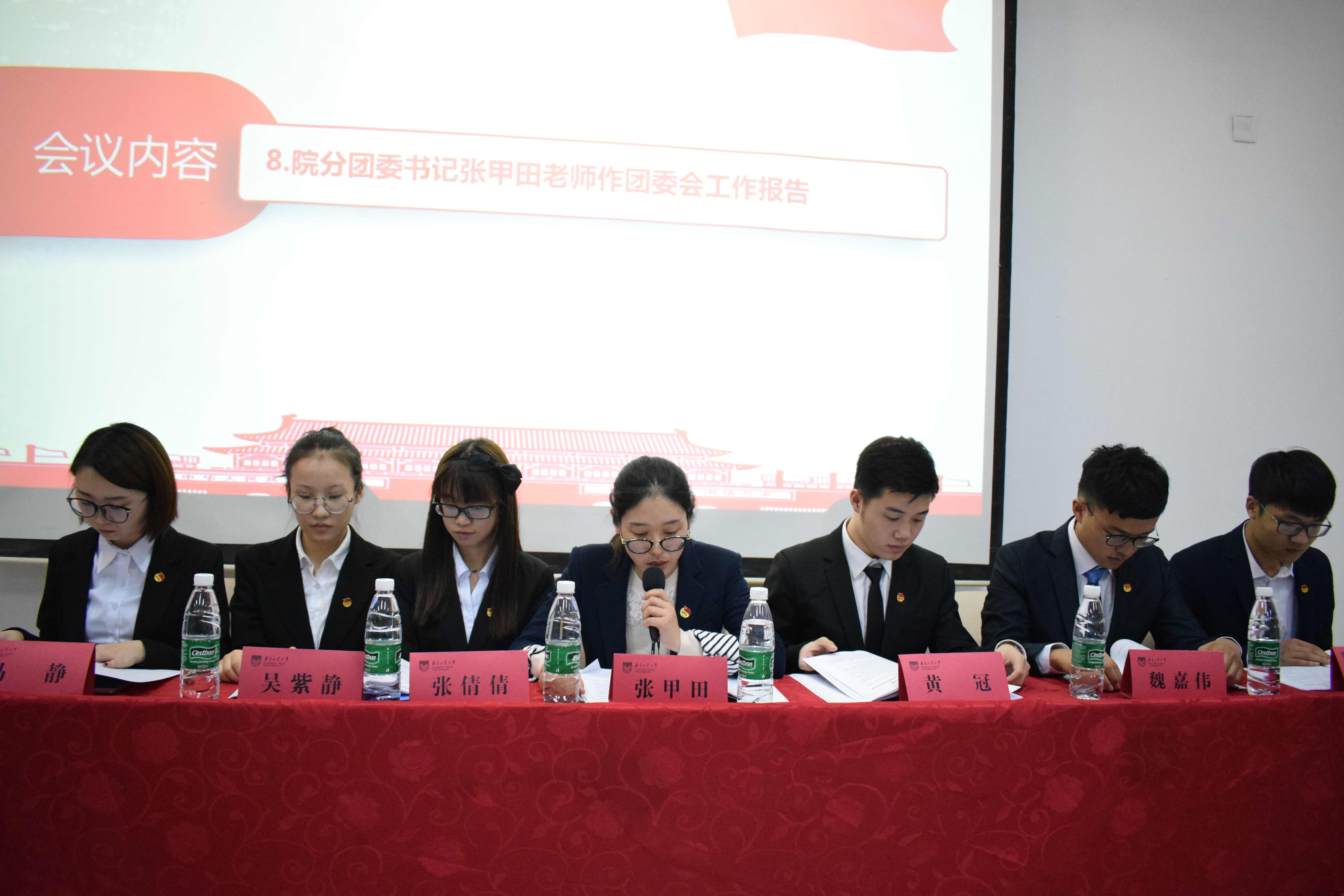 测绘科学与技术学院分团委书记张甲田老师向大会作团委会工作报告。张老师从“坚持以理想教育为先导,做好团员的思想引领工作”、“坚持以组织育人为保证,推进团的队伍建设”、“坚持以实践育人为主体,竭诚服务青年学生成长成才”三方面作了总结汇报。并展望了我院未来的共青团工作,“倾听青年心声,强化思想引领”,“突出素质拓展,聚焦青年成长成才”,“强化18新利客户端下载 建设,提升青年文化素养”,“深化组织改革,加强团的自身建设”。张老师呼吁我们弘扬十九大精神,追求科学之真谛。跟上时代步伐,进一步坚定信仰,不忘初心,砥砺前行,让青春在实干中焕发出绚丽光彩,奋力书写测绘科学与技术学院共青团发展的新篇章!黄冠同学随后作学委会工作报告,张甲田老师作团费收缴使用情况报告。
