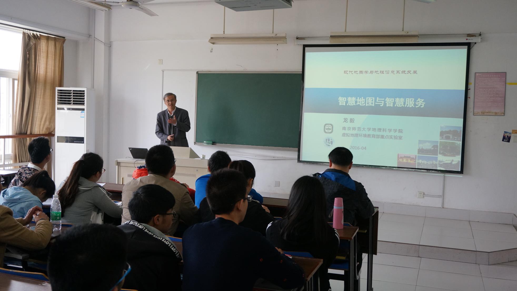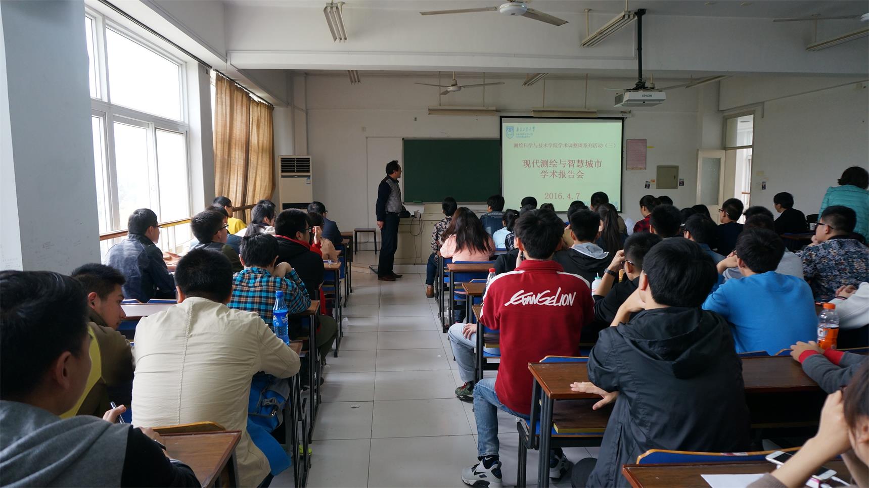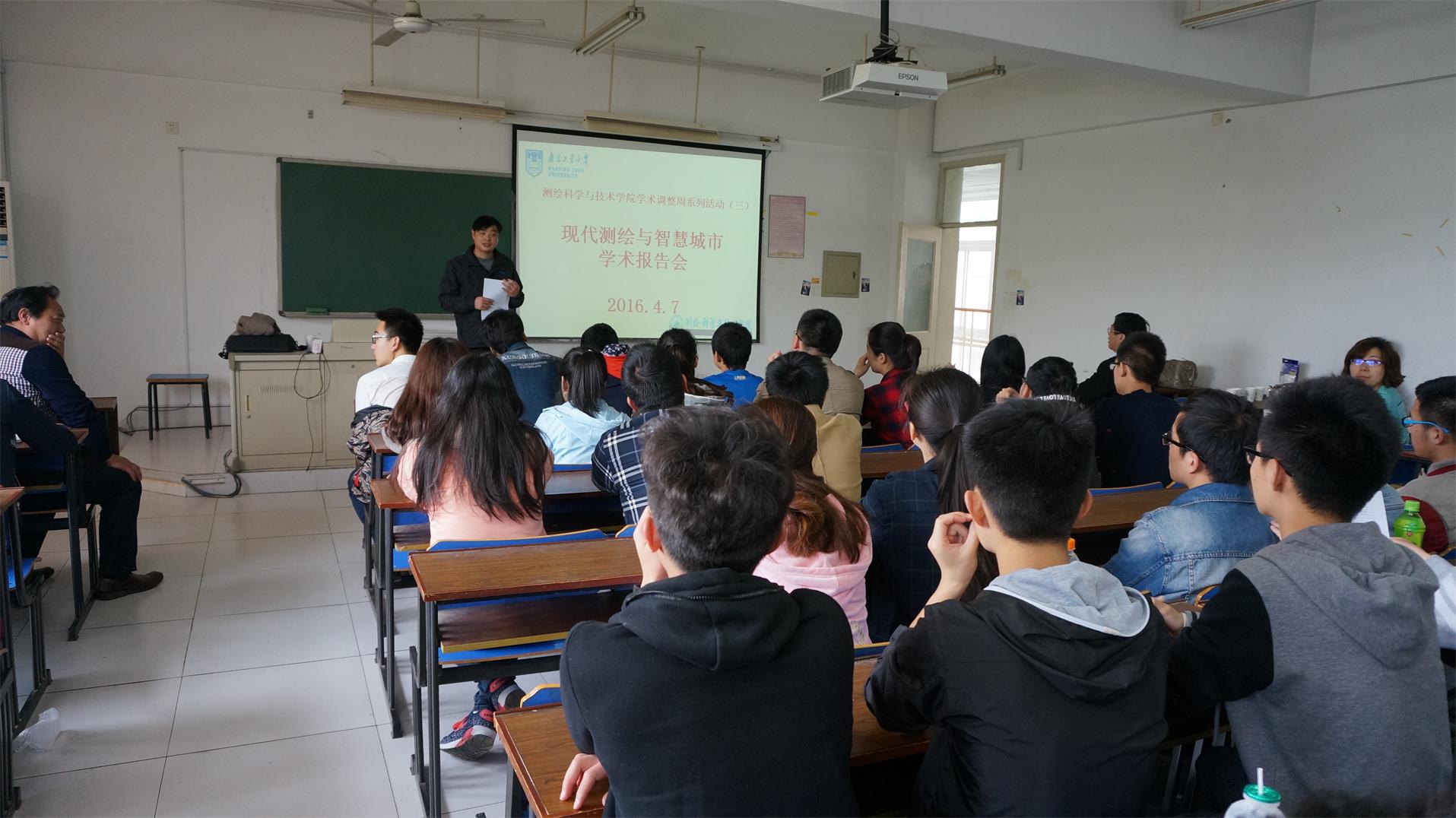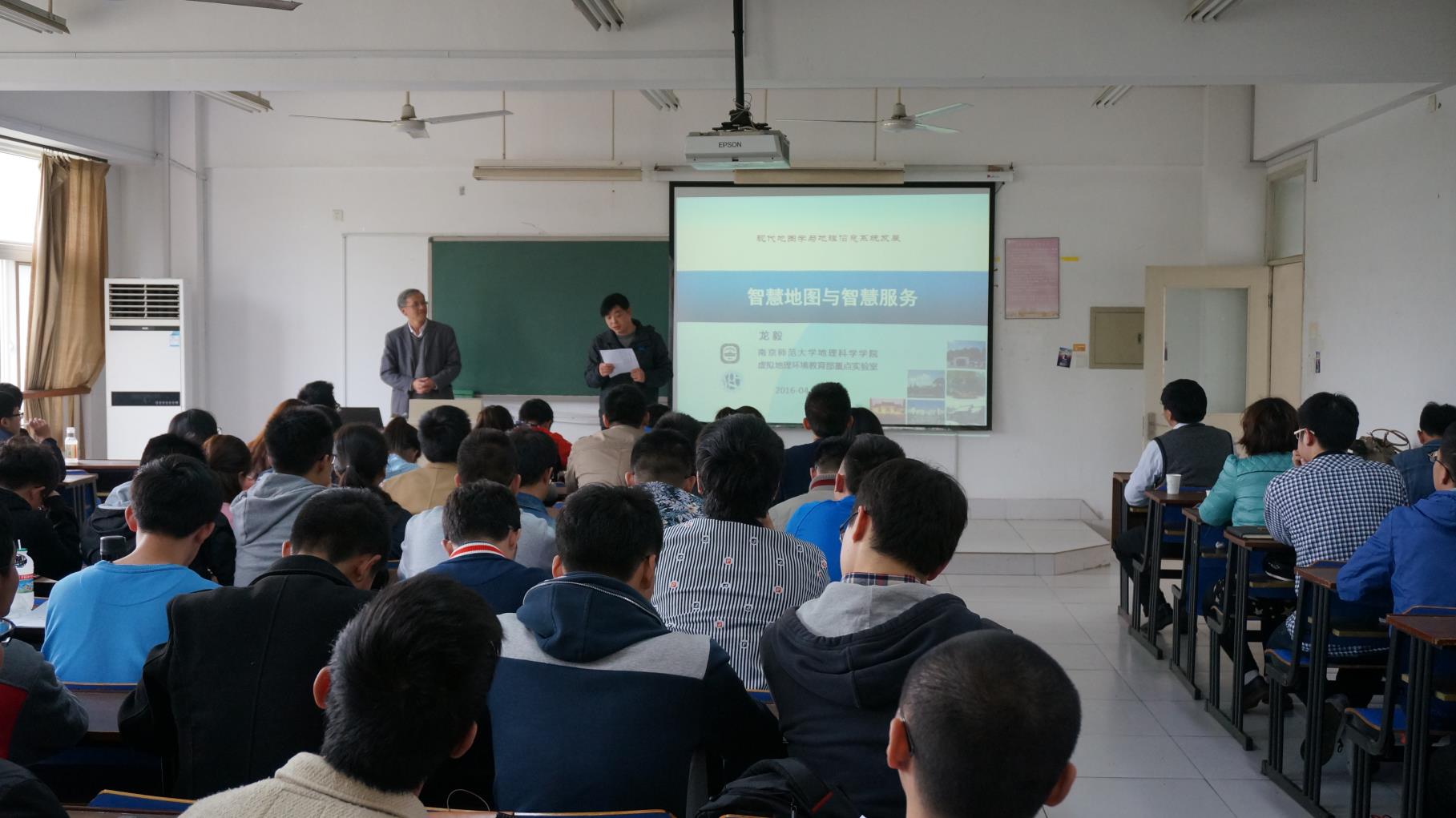 4月7日下午2:00,在江浦校区仁智楼326教室,河海大学地球科学与工程学院岳建平教授和南京师范大学龙毅教授应学院的邀请,为学院师生做了“现代测绘与智慧城市”、“智慧地图与智慧服务”的学术报告。李明峰院长、教师代表、全体在校研究生和部分本科生参加了报告会,报告会由徐敬海副院长主持。