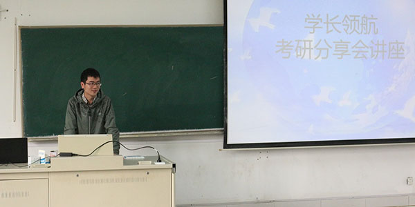 4月5日下午2:00,在江浦校区仁智楼502教室,我院举行了“学长领航”系列活动---考研经验分享会,2012级考研成功的同学与全院学生分享了他们的考研心得、体会与经验,讲座由2015级的解恩同学主持。