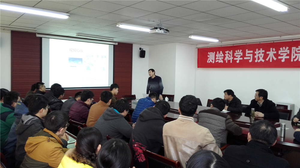 报告中,刘教授首先全面综述了视频GIS的概念及其关键技术框架体系,介绍了视频GIS内涵特点、研究进展。接着从视频GIS数据管理、视频地理分析、视频融合表达、视频内容分析等方面深刻剖析了视频GIS的典型应用技术。报告内容深入浅出,生动有趣,赢得了全体师生的热烈掌声。