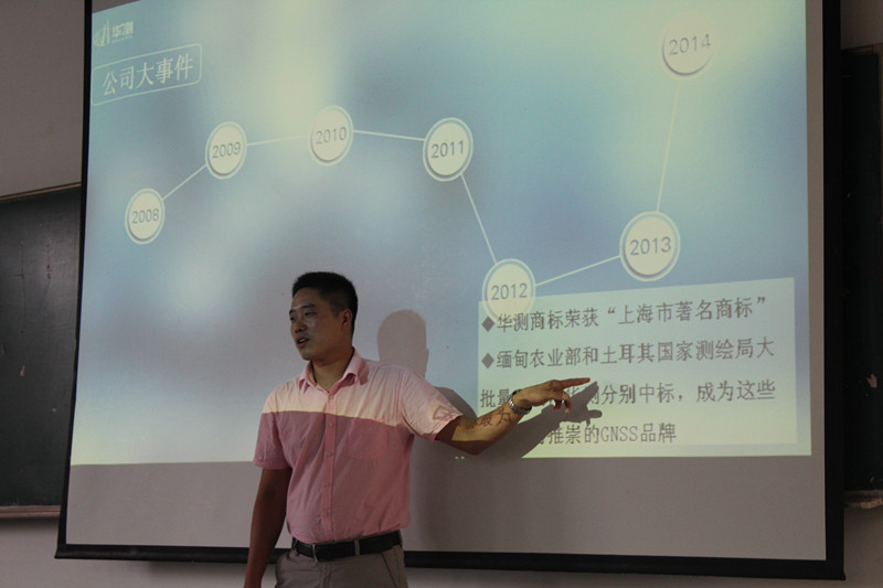 上海华测导航技术有限公司南京办事处副经理高地振首先介绍了公司的情况,从介绍中我们了解到,上海华测导航技术有限公司成立于2003年,主要分为技术和销售两条线路,历经十年发展,该公司已具有强大竞争力。在全国设有31个分公司,并在海外拥有3个办事处。该公司发展势头良好,年收入增长率超30%,并致力于高精度GNSS产品的研发,目前已广泛运用于大地测量、海洋测绘、北斗导航、农业生产等方面。为保证公司更好的发展,华测导航技术有限公司与多所高校联手,聚集各方人才,自主创新。另外,高先生也补充道,华测导航技术有限公司采取人性化的管理方式,公司员工的福利拥有极高的保障,员工在公司的生活也非常丰富,公司每年都会组织旅游,长跑,高尔夫等户外活动,也不乏有高空挑战,红军主题训练等趣味性活动,且员工在华测可以得到较好的培训。在此,高先生表示欢迎各位有能力者的加入。