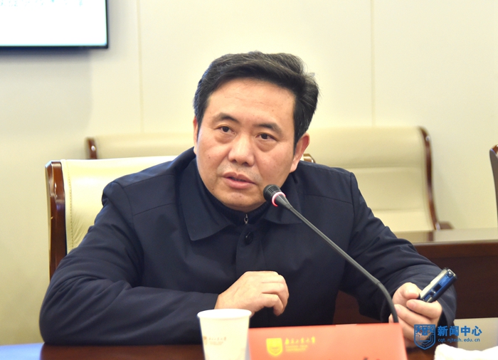 芮鸿岩书记首先致辞,他对刘庆院长一行到访表示欢迎,并用“亲上加亲、紧之又紧、实上加实”表达了双方一直以来的深厚友谊和发展渊源,充分肯定了省产研院体制机制改革的先进理念和已取得的创新成果。芮鸿岩书记指出,学校与省产研院源远流长、合作基础深厚,希望双方以本次签约为契机,携手建立高层次创新人才培养的育人体系,进一步助力学校学科建设和体制机制改革,早出创新成果、树立合作典范。