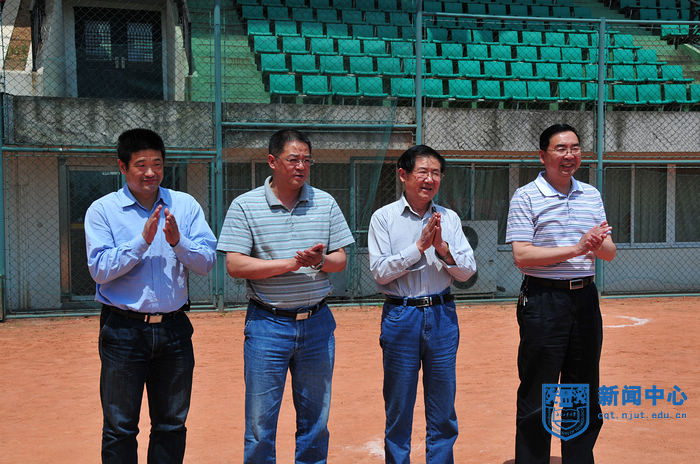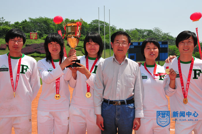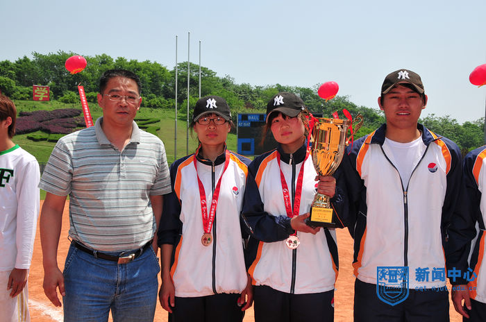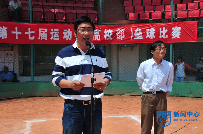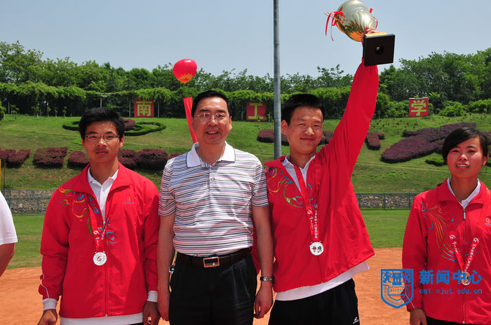 江苏省第十七届运动会高校部(乙组)垒球赛经过两天半紧张激烈的比赛,于5月12日上午圆满结束,组委会举行了简短的颁奖仪式。江苏省学生体育协会副主席、大会组委会竞赛部部长庄惠华,竞赛部副部长、南京航空航天大学体育部主任贡建伟,竞赛部副部长、南京大学体育部书记吴明,竞赛部副部长、我校体育部主任王浩,体育部党总支书记陈建华、副主任张天峰等出席颁奖仪式。颁奖仪式由我校体育部党总支书记陈建华主持。