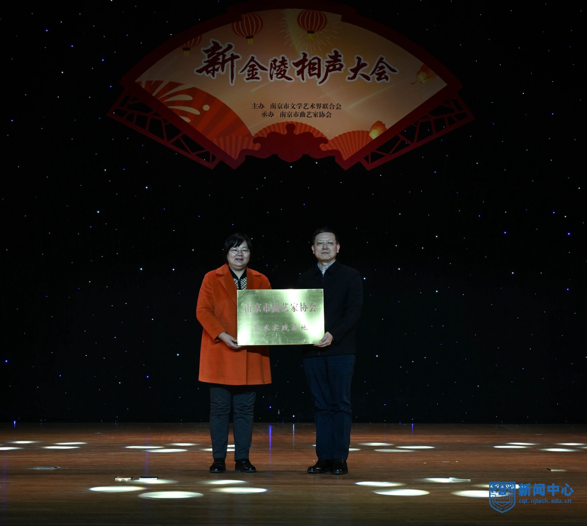 演出开始前,陈政代表市文联向我校授予“南京市曲艺家协会艺术实践基地”铭牌。