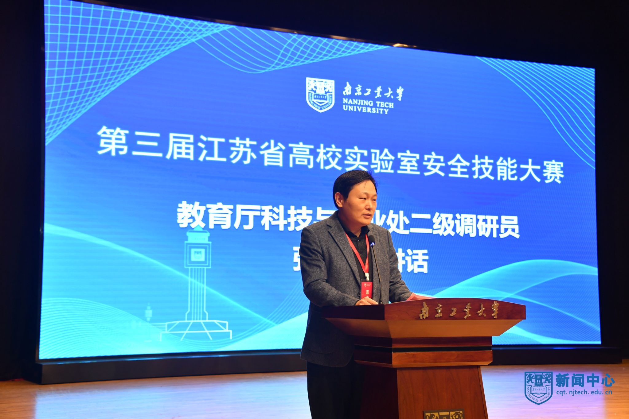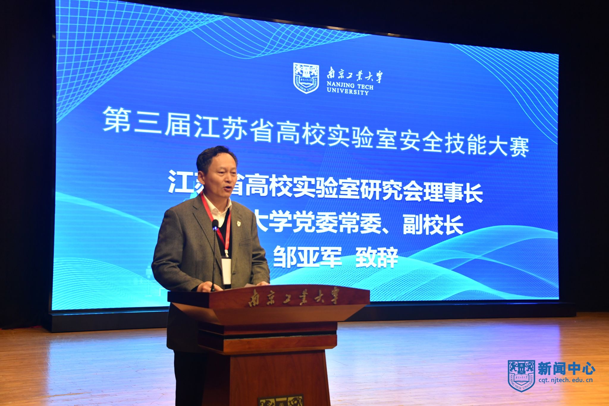 3月17日,由江苏省高校实验室研究会主办、我校承办的第三届江苏省高校实验室安全技能大赛在江浦校区举行。江苏省高校实验室研究会理事长、南京大学副校长邹亚军,江苏省教育厅高等教育处二级调研员丁同玉、科学技术与产业处二级调研员张海珠,南京市公安局治安管理局副局长周向阳,我校副校长戴志晖,党委常委、党委宣传部部长夏侃出席开幕式,开幕式由江苏省高校实验室研究会秘书长、南京大学实验室与设备管理处处长张徐祥主持。