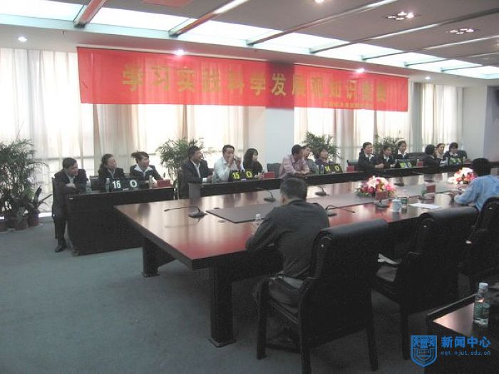 为深入学习实践科学发展观,验收和巩固学习成果,10月14日下午,后勤服务集团党总支第四党支部举办了学习实践科学发展观知识竞赛,四支部范围的科技大楼、科苑宾馆、校园中心、维修中心、安居物业五个部门的代表队参加了比赛,每个队由3名党员和群众组成。集团党总支书记陈军、副总经理帅国芳担任比赛评委,校党委组织部副部长夏侃应邀担任特邀评委。四支部党员及集团其他支部部分党员观看了比赛。