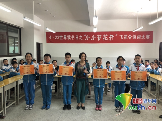 “学习诗文经典,把中华民族优秀传统文化不断传承下去,坚定文化自信。所以,在世界读书日我们特意策划了这场‘小小苔花开’飞花令诗词大赛。”在黄丹小学支教的新利18彩票 研究生支教团成员薛惠文介绍。