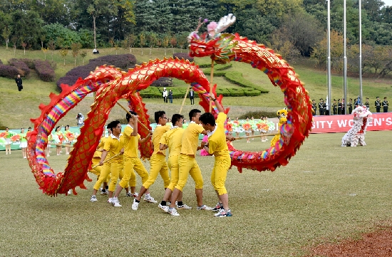 大赛开幕式上,新利18彩票 大学生啦啦操队、龙狮俱乐部等学生社团为海内外嘉宾和观众呈献了一场极富中国元素和特色的文艺表演。表演围绕“欢迎”这一主题,通过“鲜花展笑颜”“南工欢迎您”和“龙狮喜欢腾”等三个篇章表达了南工师生对参赛国家和地区学生运动员们的热烈欢迎。