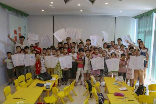 “南工翼行”科普团的成员们在鼓励孩子们介绍自己之后,因势利导,继续引导他们展示自己。农村教育条件差,农村学生不像城市学生一样多才多艺,也没有自我展示的机会。
