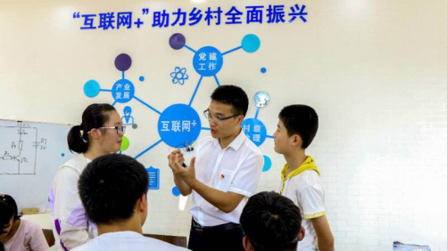 “南工翼行”科普团按照不同的年龄段对西棘荡村的学生展开了启蒙教育,对于年级大一点的学生教授基本的编程语言知识,加深他们对于计算机的理解,借助一些小小的电学知识扩展孩子们的知识层面;而对年级小一点的学生,他们选择了更加生动、更加易懂的“可视化编程”,通过制作电脑小游戏,让他们对互联网有初步的认识。