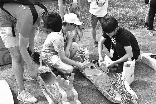 学子们运用材料力学、流体力学、控制方法等各专业知识,制作了一条条游动自如的混凝土龙舟。