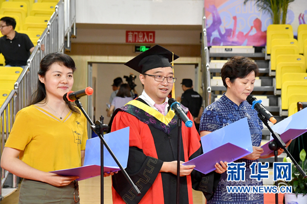 “今年我们创新了形式,采用教师代表、辅导员代表、服务人员代表三人小组集体登台‘对话呼应式’发言,让毕业生真真切切地留下深刻印象。”新利18彩票 学生事务部部长郭万牛介绍说,“高校育人是全方位的,一草一木皆关情,这不是猎奇和噱头,而是为了彰显学校的育人文化。”谈到为什么选择李广珍作为代表发言时,郭万牛表示,她是校园“红人”,深受学生喜爱,好多同学亲热地称她为“阿姨”或“干妈”。她在校园经营浦园餐厅18年,对学生关爱备至。她会为过生日前去就餐的学生送上一份加了三个溏心鸡蛋的长寿面;她还曾成功劝阻因失恋而准备退学的女生,后来这名女生考取了研究生;她还曾管了一个已毕业的学生几个月的伙食,直到他找到了理想工作;她也曾千里迢迢地坐飞机去参加毕业学生的婚礼……(刘果 杨芳 摄影 钱澄)