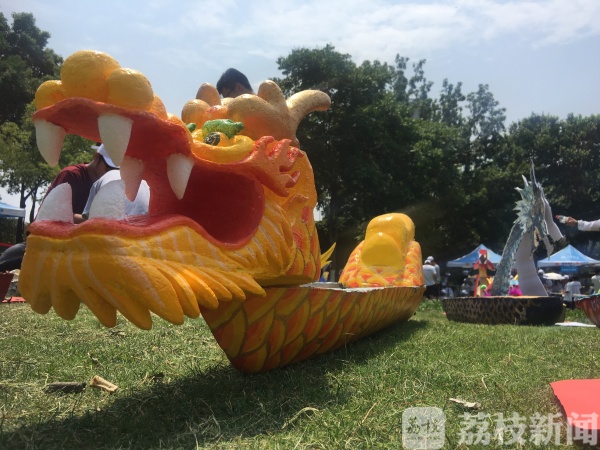 本次大赛还吸引了海外留学生的积极参与,尽管他们的汉语不很地道,可他们的龙舟却体现了中国的传统文化元素。这个来自东帝汶,中文名为王琪奥和的海外留学生兴奋说:“我非常喜欢中国传统文化,这个龙舟以西游记为背景,这个是花果山,这个像是孙悟空腾云驾雾一样。”