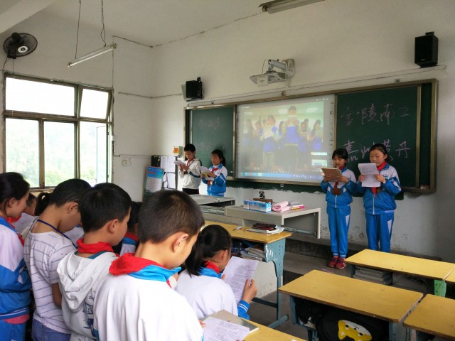 “我们选取了古代诗、近代诗以及现代诗各一首,主要是想通过朗诵的方式让孩子们明白:不论身处什么年代,无论贫困还是富有,不论身处东部城市还是西部山区,诗歌可以带来共同的触动。”社会1702班辅导员王中元这样说到。“隔空朗诵很好玩,大哥哥大姐姐读得好好听,将来我也要像他们一样读大学!”说出这句话的时候,五(3)班的罗瑞雪同学显得有些羞涩,但目光中却透着坚定。“我希望这次和大学生一起朗诵的经历能在他们的心中埋下一颗种子——走出去,去看看更远的风景。”在黄丹学校支教的南工研究生支教团成员高浩老师说。