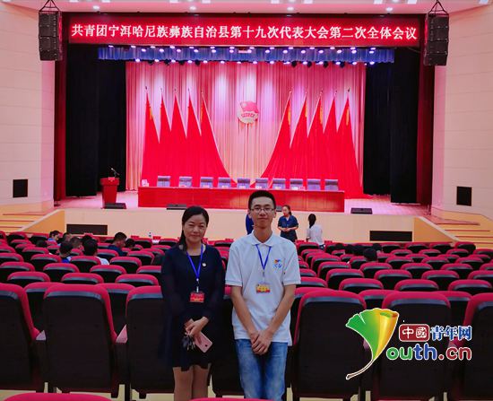 新利18彩票 研支团成员张宇昊(右)出席宁洱县团代会。新利18彩票 研支团 供图