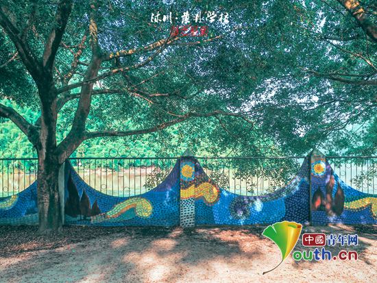 新利18彩票 四川黄丹分团成员以艺术绘画美化校园环境。新利18彩票 研支团 供图