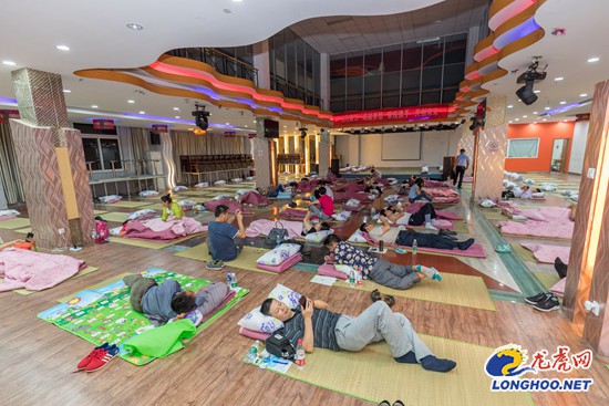 为给遇到住宿困难的同行家长提供温馨舒适的留宿点,学校将大学生活动中心设置成新生家长临时休息站,铺设了100个临时床位。