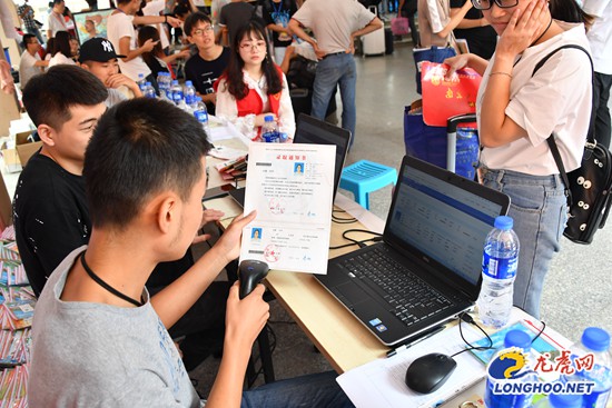 记者注意到,在每个二级学院的报到摊点前都有一个扫描枪,如此高效的扫码报到给新生和家长带来了很大的便利。该校学生事务部部长郭万牛介绍说:“今年学校完善了网络迎新报到系统,新生在报到之前,凭考号和身份证号登陆学校迎新网站并完成填写个人信息、查询应缴费用、填报来校报到交通方式和时间、预订公寓用品、申报绿色通道等项目,到校后在报到点扫码确认一下即可完成注册入学。”