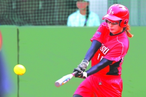 9月4日,在天津举行的第十三届全国运动会女子垒球决赛中,江苏队以6比1战胜辽宁队夺得冠军。图为江苏队选手徐佳在比赛中击球。