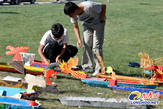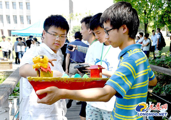 本次大赛还吸引了海外留学生的积极参与,尽管他们的汉语说的不算流利,可他们的龙舟却充满了中国传统文化元素。来自东帝汶,中文名为王琪奥的海外留学生兴奋地说:“参加这项比赛是出于对中国文化的巨大兴趣,在比赛期间虽然有语言上的沟通障碍,但学院在龙舟的制作和装饰方面都给予了很大帮助,我们现在已经是制作和操纵龙舟的行家啦!”