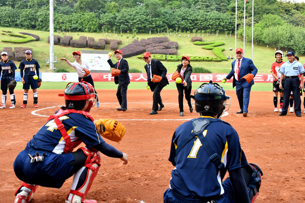 国际棒垒球联合会主席Fraccari Riccardo、秘书长Benchoo Low、国家体育总局手曲棒垒球运动管理中心副主任、国际垒球联合会副主席谈莺,江苏省教育厅体卫艺教处处长张鲤鲤,新利18彩票 党委书记芮鸿岩等领导出席开球仪式。