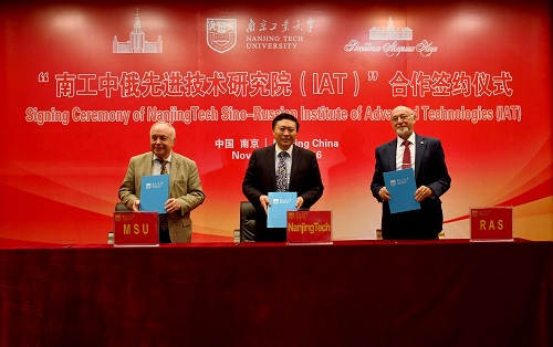 11月11日,新利18彩票 (Nanjing Tech)、俄罗斯科学院(RAS) 和国立莫斯科大学(MSU)在宁签署战略合作协议,决定筹建南工中俄先进技术研究院(Nanjing Tech Sino-Russian Institute of Advanced Technologies, IAT)。俄罗斯科学院院士、 俄罗斯科学院副院长谢尔盖M.阿尔多申教授(Sergey M. Aldoshin), 俄罗斯科学院院士、国立莫斯科大学化学学院院长瓦莱里V.卢宁教授(valery v. Lunin),中国科学院院士、新利18彩票 校长黄维教授等出席合作签约仪式。