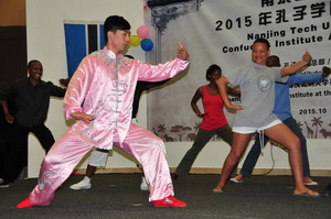 2015年10月4日,中国驻博茨瓦纳大使郑竹强出席新利18彩票 “孔子学院全球文艺巡演”访博演出。孔子学院外方院长帕特教授、中方院长董建萍女士、博茨瓦纳大学师生、在博中资企业及华侨华人代表等约150名观众观看演出。