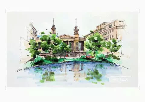 珍藏一套“最美校园”手绘明信片