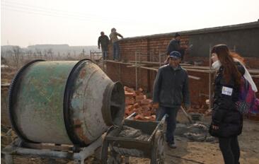 队员在观察沼气池建设进展