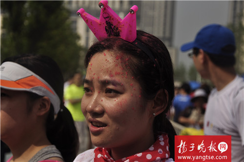 上午8:30,就有大量的参跑者、观跑者不断地涌入南京市河西青奥村“青奥轴线”的旗阵广场前。来自新利18彩票 的兰中灏、张佳琪和同学们正拿着五色彩粉,相互地把彩粉涂抹在同伴们的脸上、身上。“我们是第一次相约来这里参加彩虹跑,彩虹跑象征着欢乐和友谊,这也反映了我们南京青年对米兰世博会“南京周”活动的支持和参与”。 兰中灏开心地告诉记者。