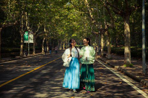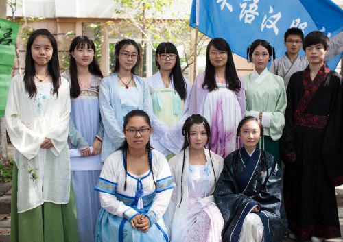 汉服社虽然成立时间不久,但是在学校中还是小有名气。经常会看到几位女生身穿不同颜色同一款式的汉服,并排走在教学楼的过道里,或者是一对身着汉服的情侣携手走在校园中。“尽管我每天都穿汉服学习、生活,但我并不严格要求社员这样做,但是一到重阳,冬至,中秋等重要节日时,所有社员都必须穿着汉服来参加活动,以此来宣传弘扬汉服文化。