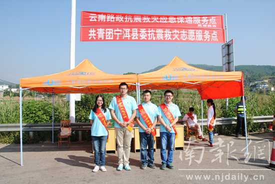 度过了漫漫长夜后,第二天,佟京达和一起支教的南工大学生许婧璐、解涛瑞、兰金兴参与到抗震救灾服务中。“景谷县地处山区,交通不便,通往县城的道路是2级盘山公路,所有的外来救援物资都要从我们这里下高速,穿过宁洱县城后,进入盘山公路前往景谷县城。所以宁洱县成了外来赈灾物资运输通道的重要结点。” 佟京达说,在宁洱团县委的组织下,他们在高速口设立了抗震救灾志愿服务点,他们就在这个服务点服务。为一辆辆外来志愿者车辆指出前往灾区的道路;为奔波了一天还没来得及吃上饭喝上水的司机们送上水和食品;组织外来志愿者们休息,搭车前往景谷灾区;向所有抗震救灾的爱心人士道一声感谢,送一句一路平安……