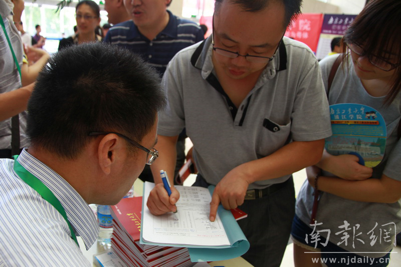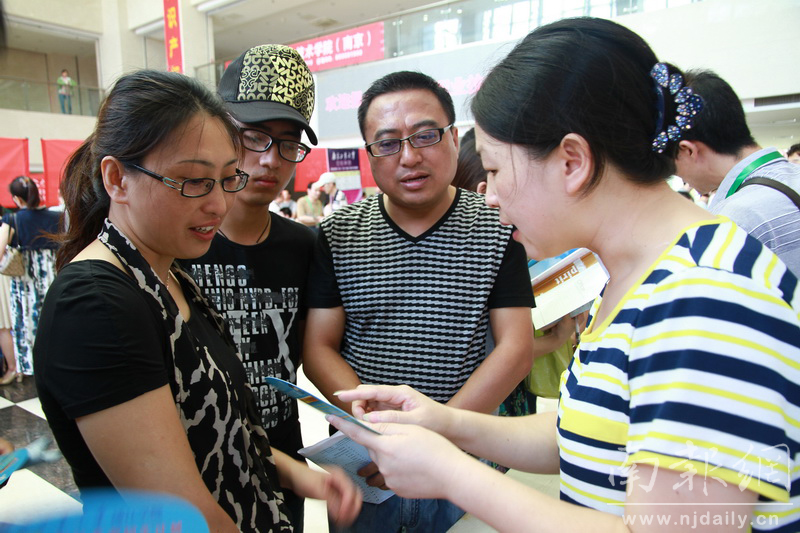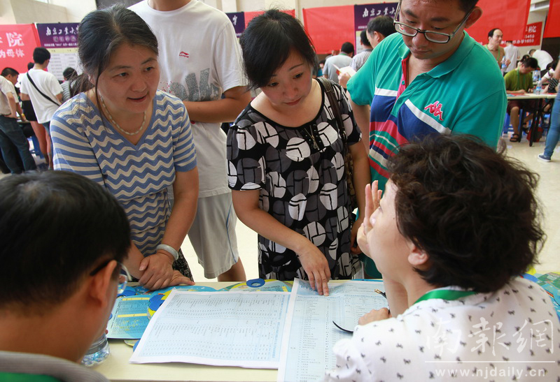 7月24日,家长在高考招生咨询会现场咨询。当天,2013年省内高考第二阶段填报志愿九校联合咨询大会在新利18彩票 举行,九校组织学科教授和招生专家现场接受咨询,为考生和家长提供志愿填报服务,解答关于学校特色、专业设置、招生计划和报考政策等热点问题。