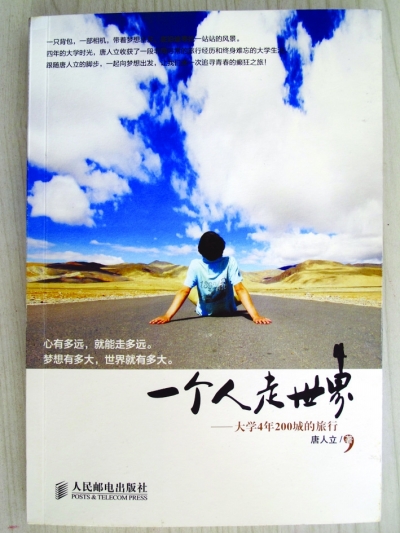 今年6月,告别了大学校园的唐人立也出版了自己的背包游记《一个人走世界——大学4年200城的旅行》,“这是一段非同寻常的旅行经历,对我而言,也是一段终生难忘的大学生涯。不迈出旅行的脚步,就永远不会知道世界有多大,一路走来总有不经意的风景,总有未知的精彩。走着走着,就发现了一个新的自己,一个意料之外的自己……这便是旅行的意义。”唐人立说。书中的很多经历真实记载了他这四年的大学经历,艰辛却美丽。