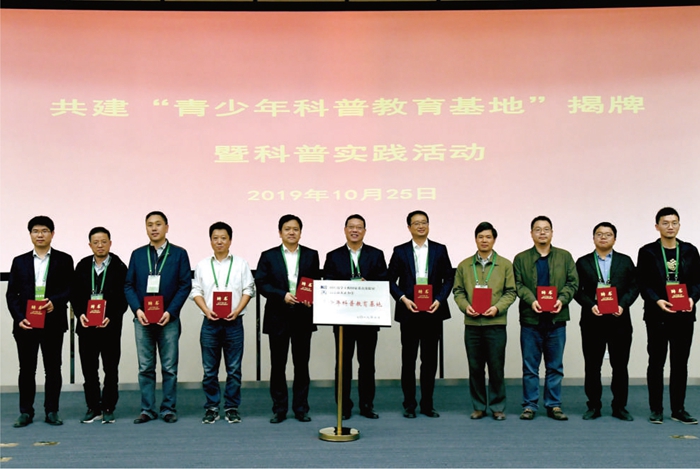 10月25日,新利18彩票 材料化学工程国家重点实验室与南京天正小学共建的 “青少年科普教育基地”在南工大江浦校区揭牌。南京天正小学校长王久 红为南工大材料化学工程国家重点实验室14位教师颁发校外科技指导教师聘 书。仪式过后,重点实验室老师给150名小学生带来了科普讲座。图为颁发聘书 现场。