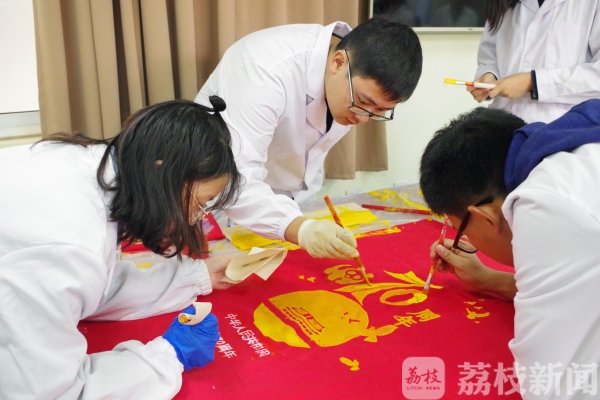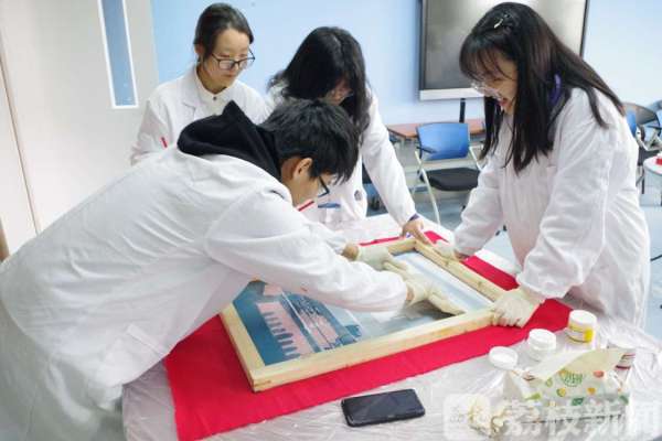 虽然非专业、零基础,但是同学们都积极讨论着分工、步骤、注意事项、设计调整等等,来自环境工程专业的一名同学兴奋的说:“在这里可以学到中华民族传统文化印染技艺,还能亲手制作献礼祖国的工艺品……这绝对是令人印象深刻的一堂课。”