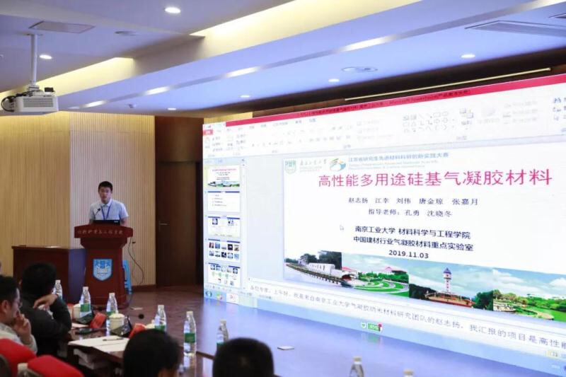 “之所以能在本次比赛中胜出,我觉得最主要的还是得益于我们项目的产业化发展的可行性。”本次比赛一等奖获得者新利18彩票 赵志扬同学热情洋溢地向我们介绍着他的项目,“我们通过优选前驱体种类与配比调控湿凝胶孔结构与化学组成,采用成本低,周期短的常压干燥工艺,开发出柔性硅基气凝胶材料,并通过纤维复合、氨基改性、湿法成型等一系列技术手段,实现气凝胶材料的节能环保等多功能应用。” 南京理工大学的参赛选手王冬云也表示:“与其他参赛队相比,明白了自己的优势和缺陷,专家们提出的问题,使我们在生产落地方面有了更多的思考。”