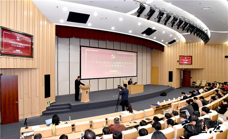 报告会结束后,南工大党委书记芮鸿岩对报告赞不绝口,他要求大家学习宣传贯彻党的十九届四中全会精神,把它作为当前和今后一个时期的重大政治任务,“一要充分认识贯彻党的十九届四中全会精神的重大意义;二要准确把握党的十九届四中全会的精神实质;三要认真抓好贯彻落实,要更加系统地深化学习,更加有力地推动落实,力促全会精神在学校落地生根。要坚持党对学校绝对领导的制度体系,要坚持落实立德树人根本任务,要坚持提升学校治理能力。”芮书记随即就对具体宣传学习作了部署和安排。