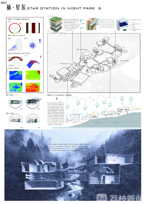 此次紫金奖大学生设计展,建筑学院选送了《大隐于市》《夹河艺教园区——徐州市夹河煤矿更新规划与建筑设计》《链活·共生——合肥市老城南地块城市更新设计》《无痕山林》《摘·星辰》等5件作品参展,充分展现了学生的创新意识、设计思维和创造能力,也是建筑学院近年来深化本科教学改革所取得的教学成果的集中展示。