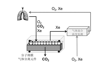用于现代医疗麻醉氙气在线回用的中空纤维分子筛膜技术示意图