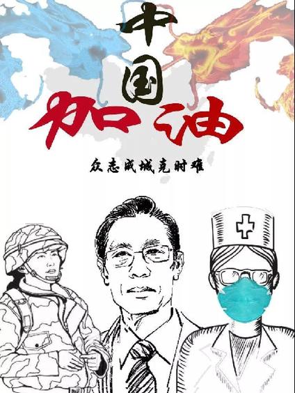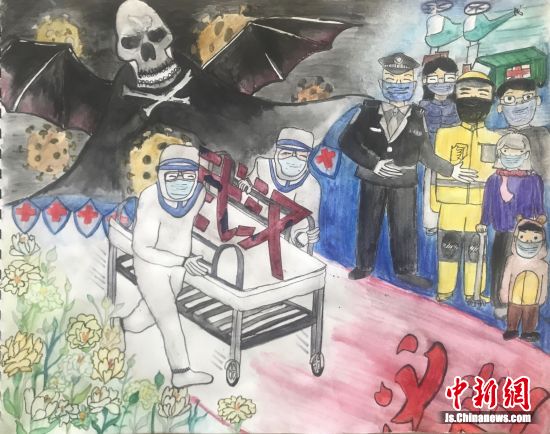 新利18彩票 学生曹度创作的《守护武汉·中国加油》。