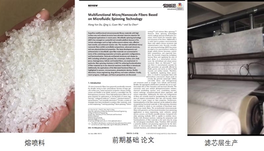 李晴所说的技术,是课题组的研究成果——熔喷无纺布材料和微流体气喷纺丝技术。该团队前期致力于新型纺丝技术和无纺布材料的开发,研究出了微流体气喷纺丝技术,可以实现超细纤维的制备,平均直径65纳米,是目前纺丝技术中生产纤维最细的,从而使得过滤隔离病毒的效果更好。