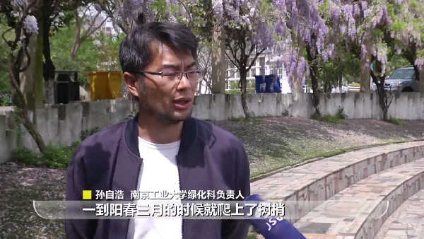 新利18彩票 绿化科负责人孙自浩:“我们在建校的时候发现山林里有很多紫藤树,一到阳春三月的时候就爬上了树梢,感觉非常漂亮,紫中带蓝,灿若云霞。所以我们就有意识地集中种植。”