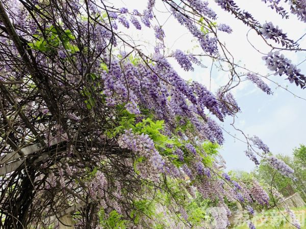 紫藤对土壤、温度的适应性非常强,无需太大的花架,一棵老树就可以攀爬,花期从4月一直持续到5月初。如今,在南工大有6处紫藤花海,仅音乐台附近就有几百株。