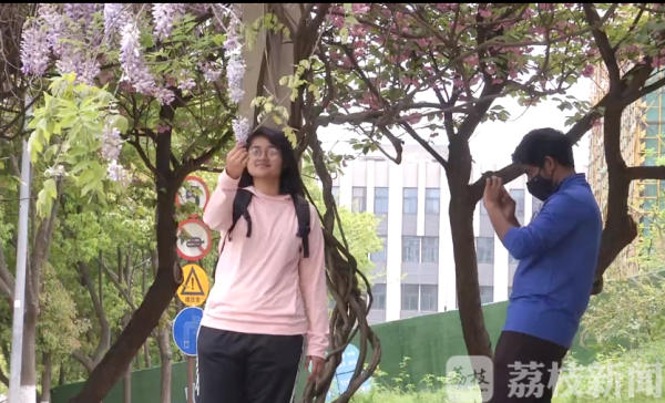 南工大海外教育学院大二学生子萨告诉记者:“我觉得我们学校春天的时候很浪漫。”