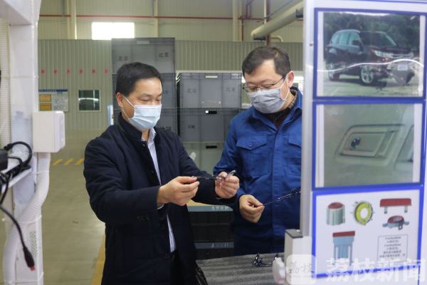 疫情期间,国家税务总局无锡市惠山区税务局局长李军(左)走访当地中小微企业