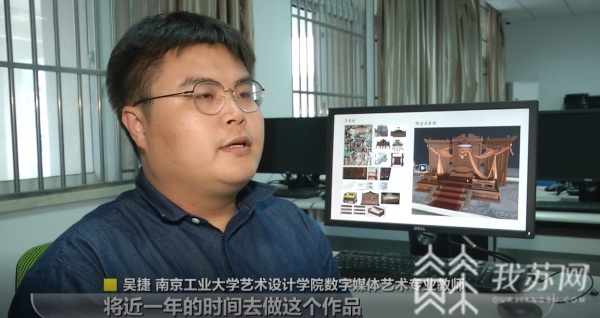 艺术设计学院数字媒体艺术专业教师吴捷告诉我们:“首先我们要在前期的过程当中,对这些文物以及这种文化资料的收集调研要进行很充足的准备。那么在中期的时候,我们要去研究这种场景的建筑的这种构造,比如说这种唐代的斗拱的建筑,斗拱的这种结构,以及这种栏杆的建筑的样式,我们都要去对它进行一个深入的了解。并且通过这种数字化技术,将近一年的时间去做这个作品,并且通过最后后期在引擎当中,去实现它的一些交互的功能,比如说游鱼、赏花,以及这种伎乐的表演。”